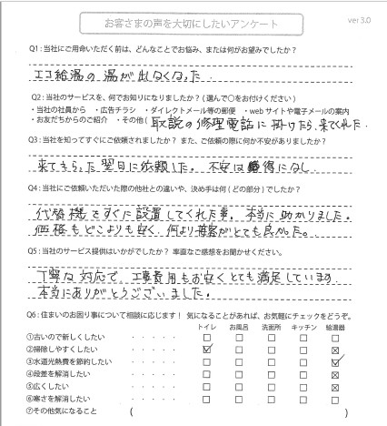 代替機をすぐ設置してくれた事。本当に助かりました。