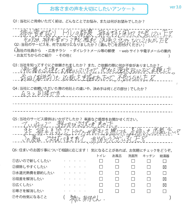 浄化槽の点検もお願いしていたので、他社を選択することなく依頼した。
