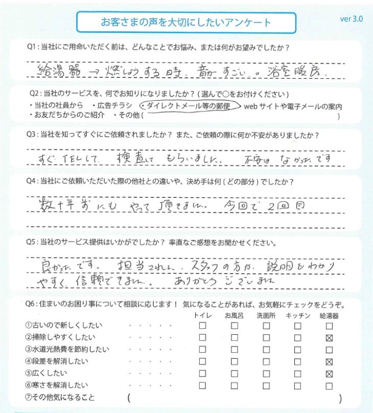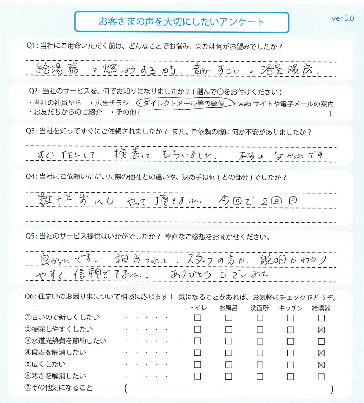 給湯器 → 燃しようとする時、音がすごい。浴室暖房
