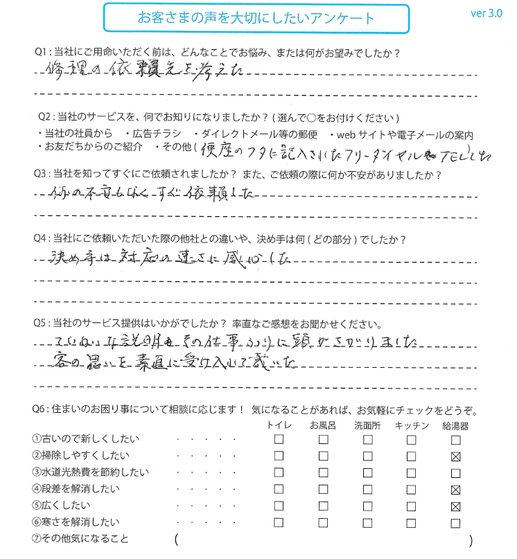 ていねいな説明とその仕事ぶりに頭が下がりました