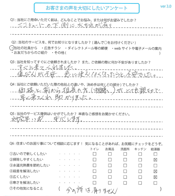 エコキュートを交換された 岐阜県のO様の声