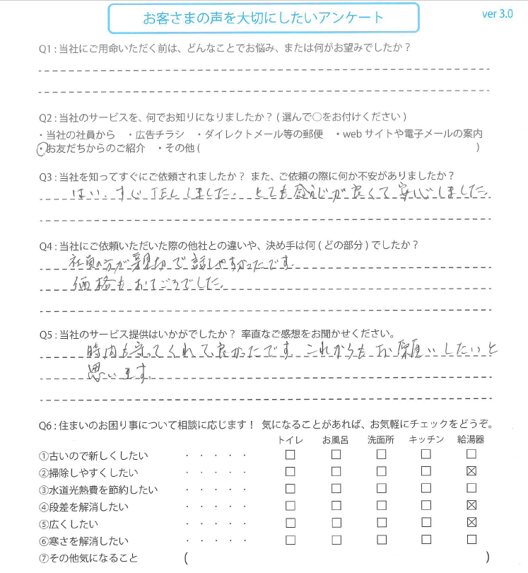時間も守ってくれて良かったです。これからもお願いしたいと思います。