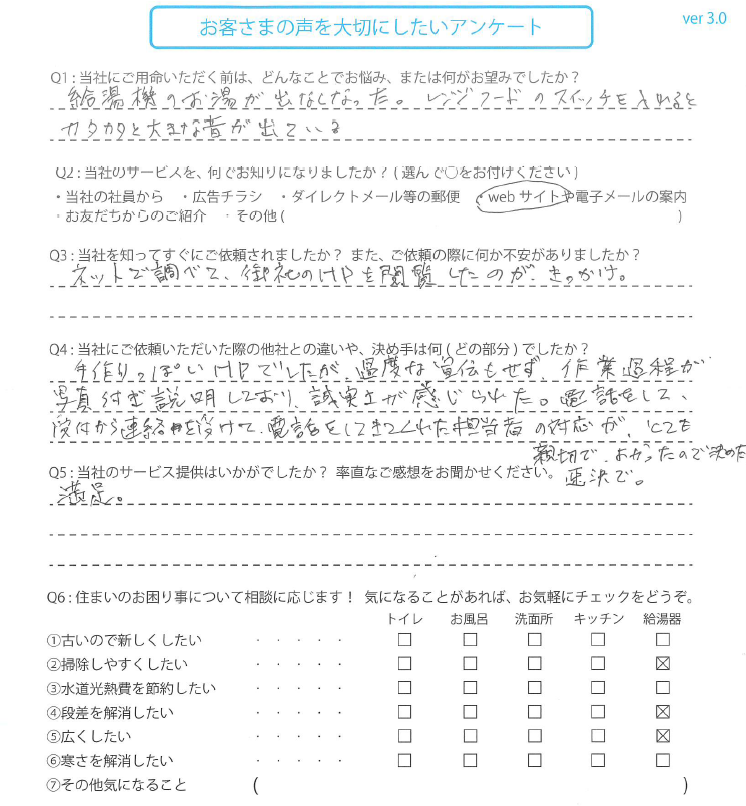 エコキュートとレンジフードを交換された 岐阜県のM様の声