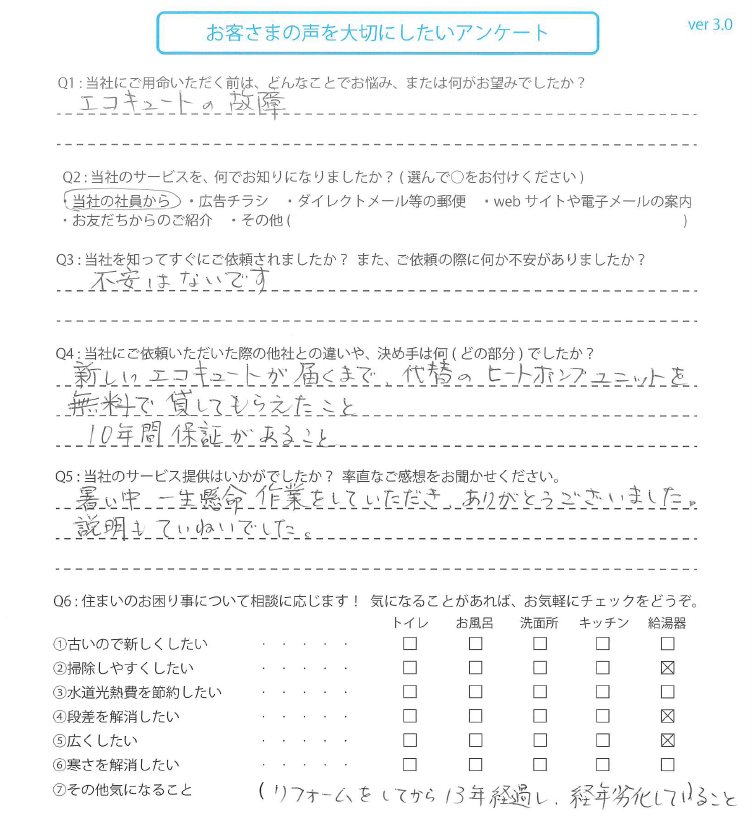 エコキュートを交換された 富山県のM様の声