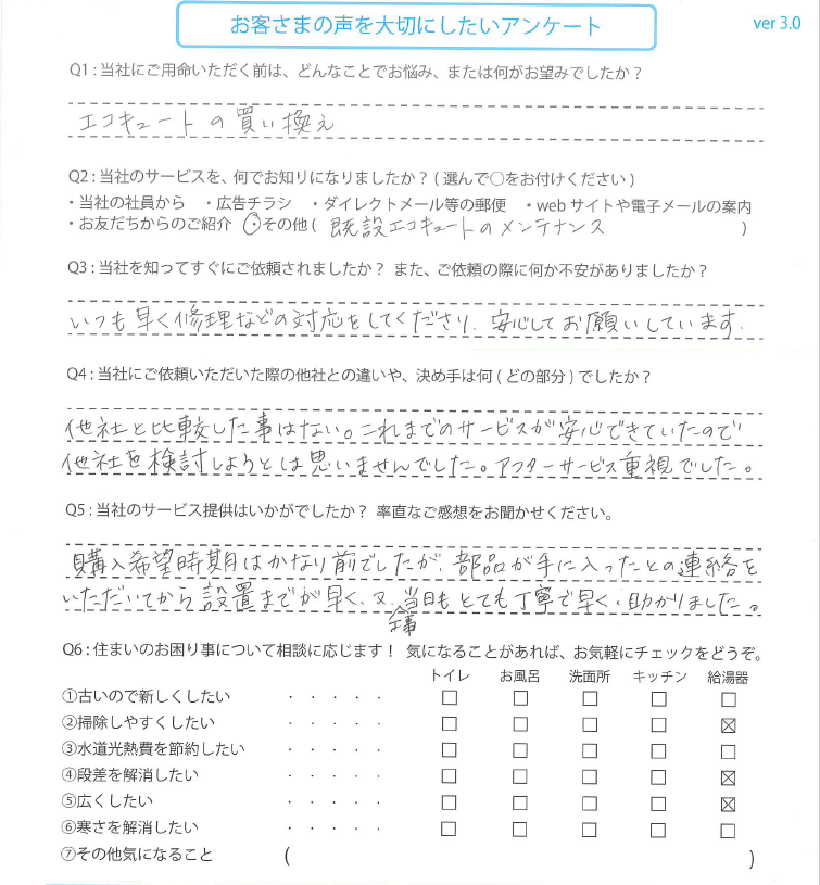 エコキュートを交換された 静岡県のY様の声