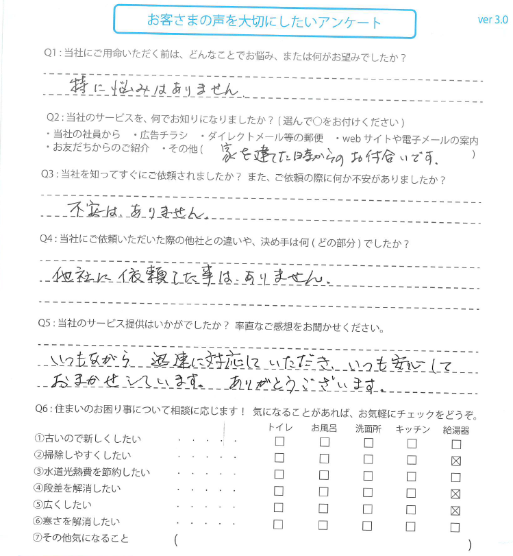 いつもながら迅速に対応していただき、いつも安心しておまかせしています。ありがとうございます。