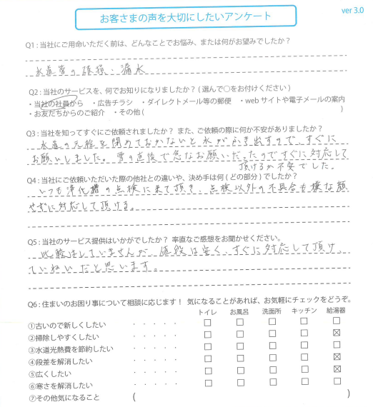水度の元栓を閉めておかないと水が噴き出すのですぐにお願いしました。雪の直後で急なお願いだったのですぐに対応して頂けるか心配でした。
