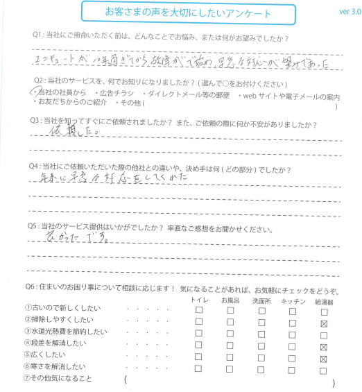 エコキュートが10年過ぎてから故障がで始め、早急な対応が望みであった。