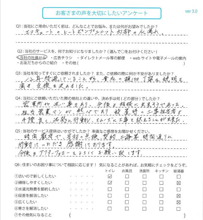 エコキュートを交換された 三重県のM様の声
