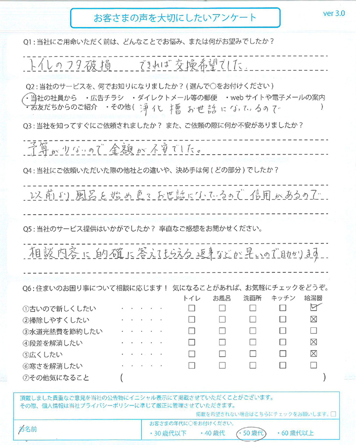 以前よりお風呂を始め、いろいろとお世話になっているので、信用があるので。