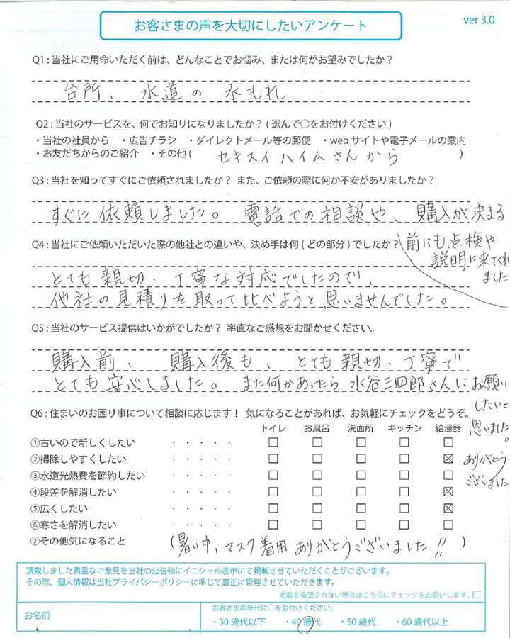 水栓を交換された 三重県 Y様の声