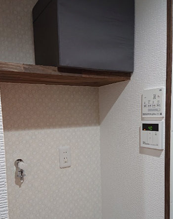 洗濯機置き場上部に収納棚を新設しました。